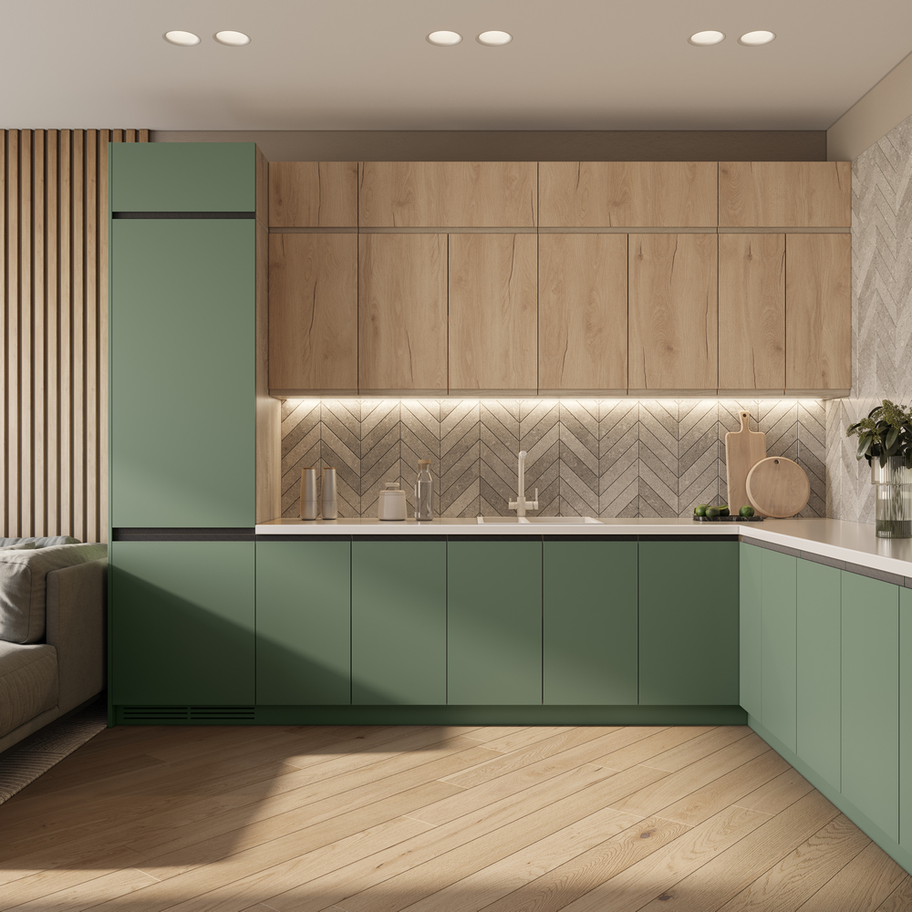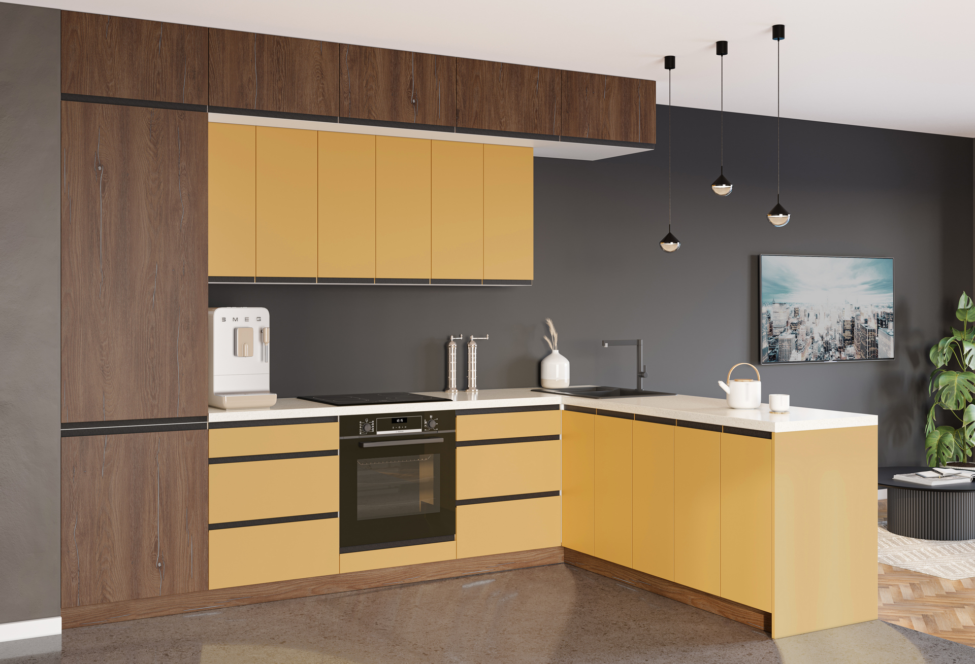 Ручка дуб сонома поєднується лише з кольорами фасадів: Білий / Дуб королівський / Ательє світлий / Дуб сільверджек вінтажний / Зелений димчастий / Іриска / Сахара / Сіра мишка / Сатин / Сутінковий блакитний / Глиняний сірий.