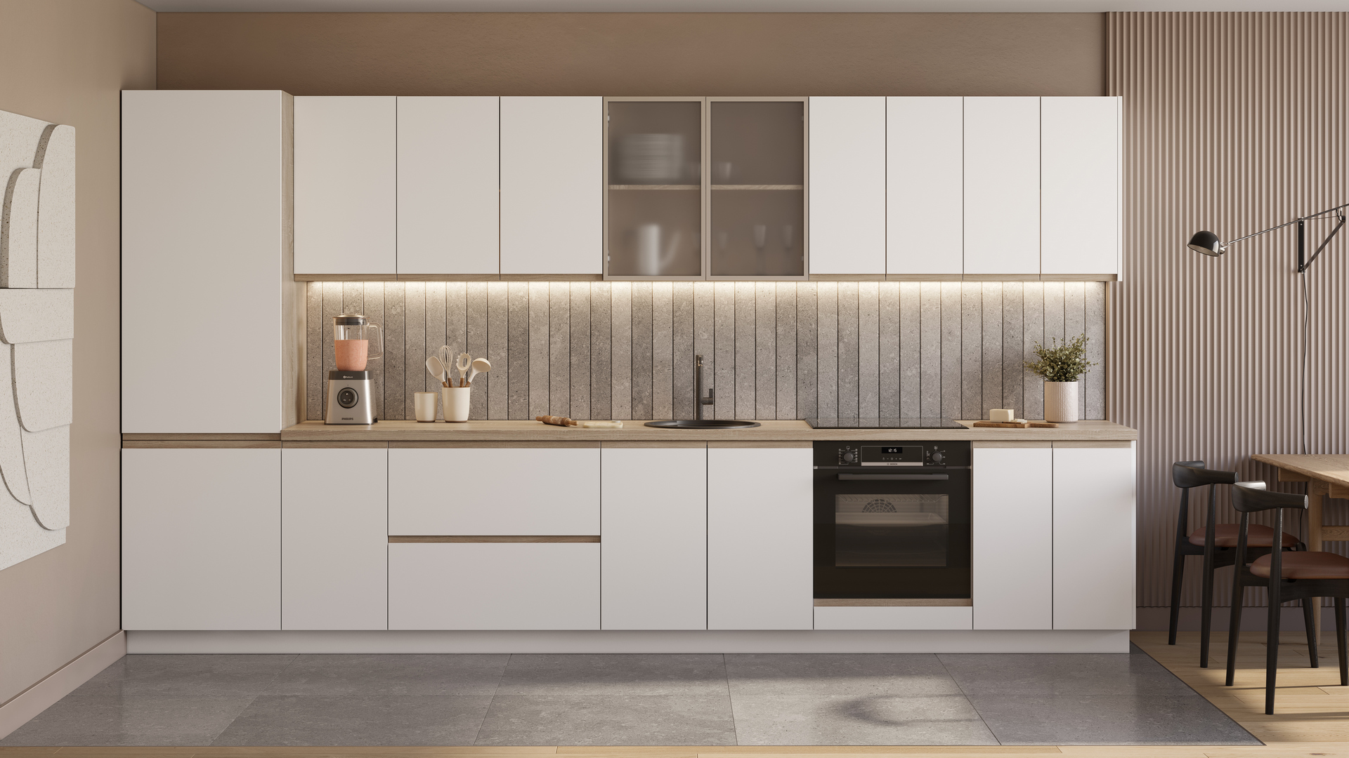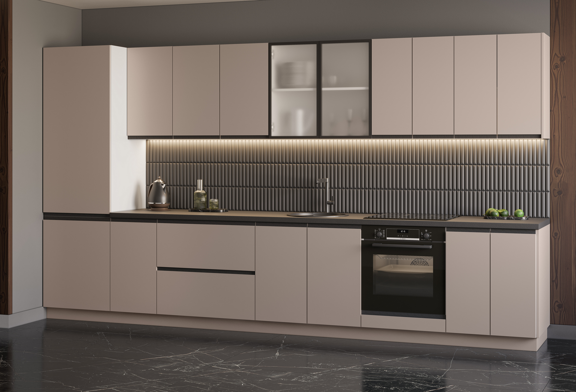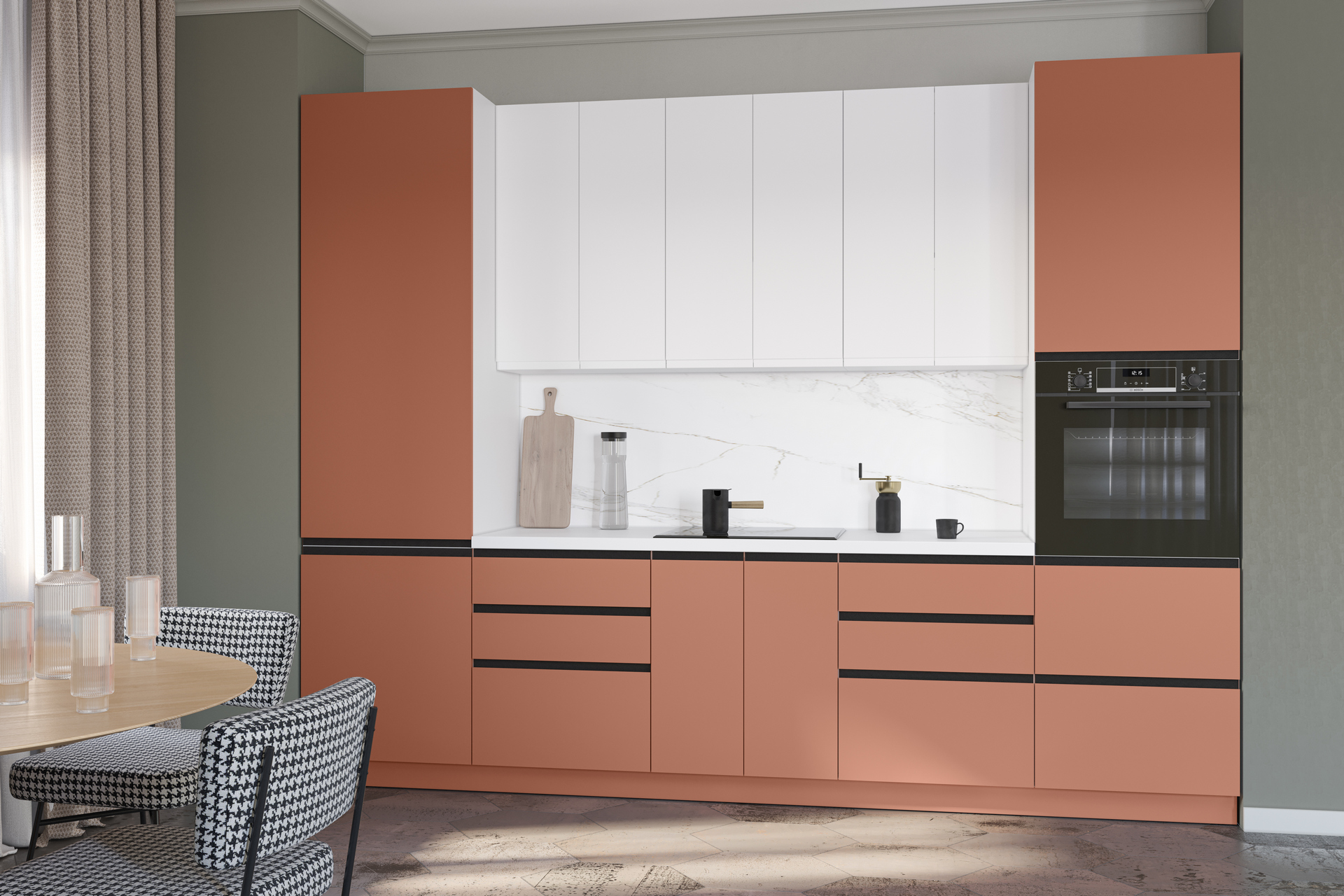 Ручка чорна поєднується лише з кольорами фасадів: Білий / Дуб королівський / Ательє світлий / Дуб сільверджек вінтажний / Зелений димчастий / Іриска / Сахара / Сіра мишка / Сатин / Сутінковий блакитний / Глиняний сірий.