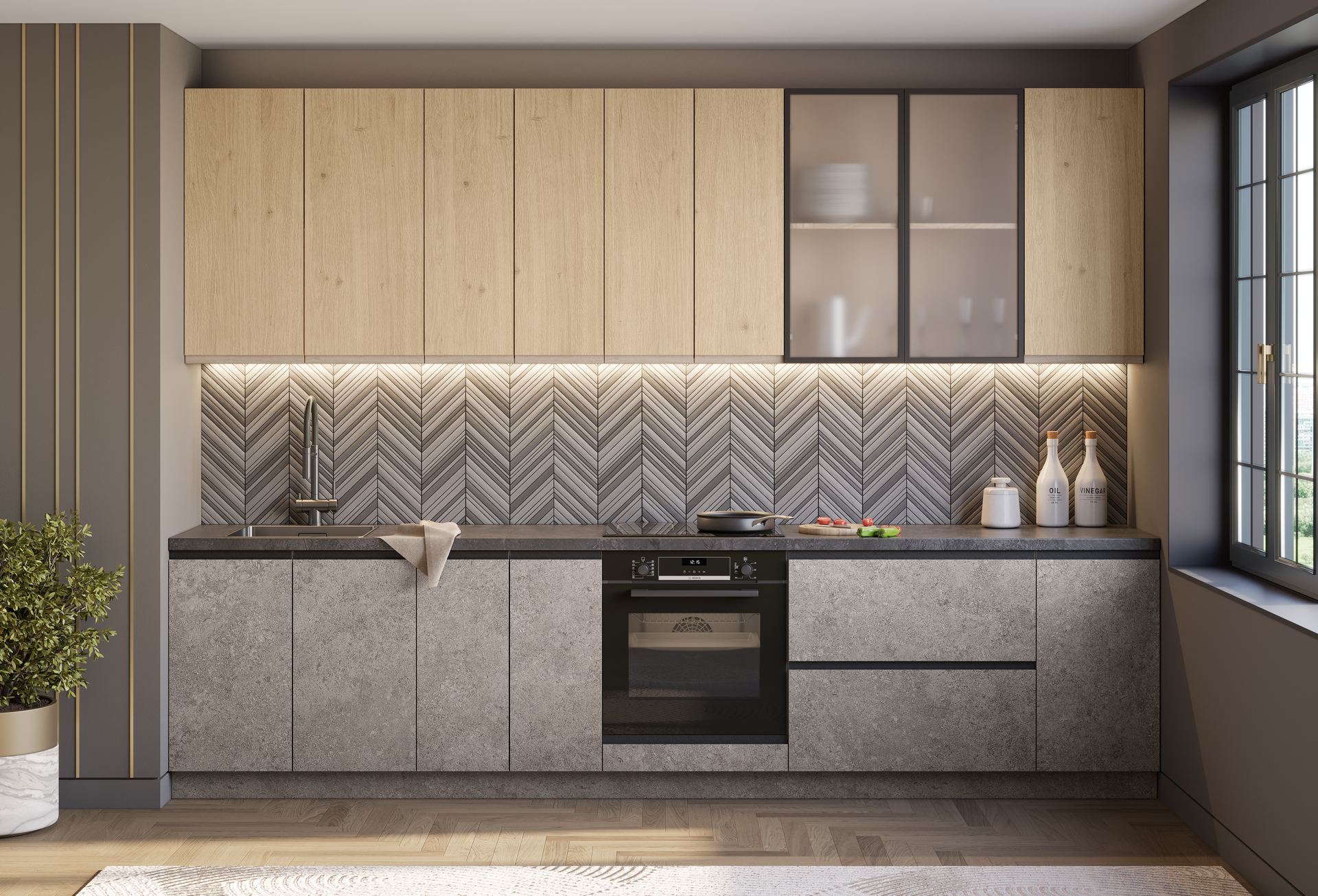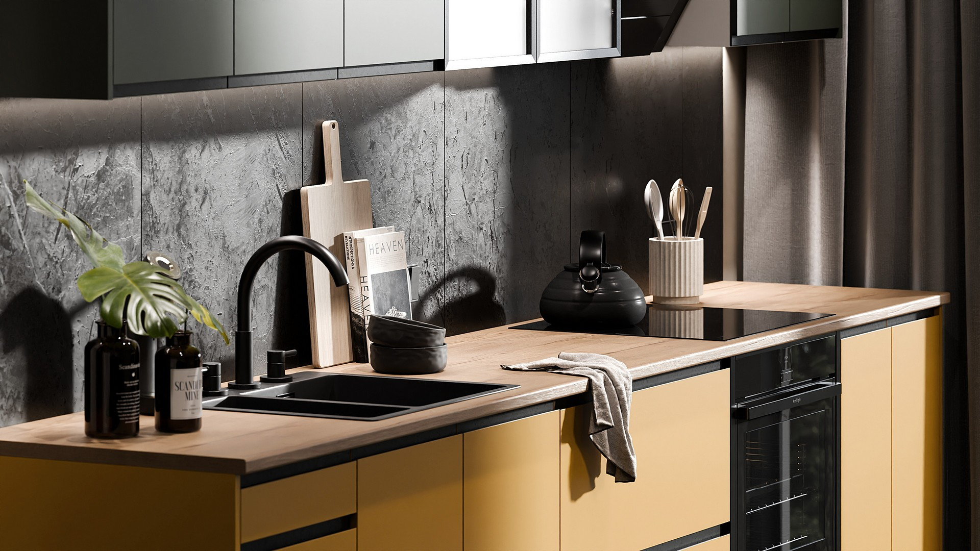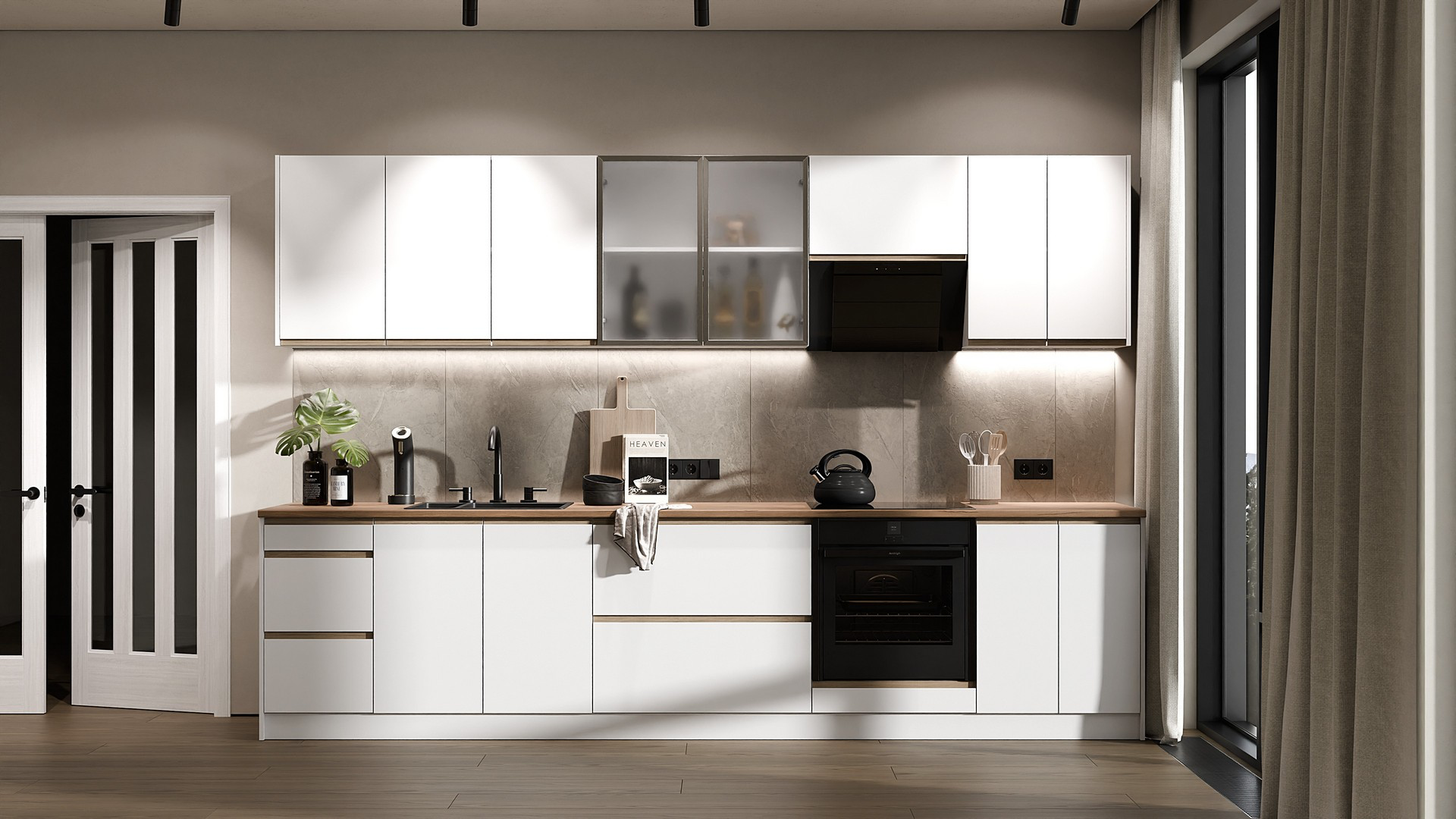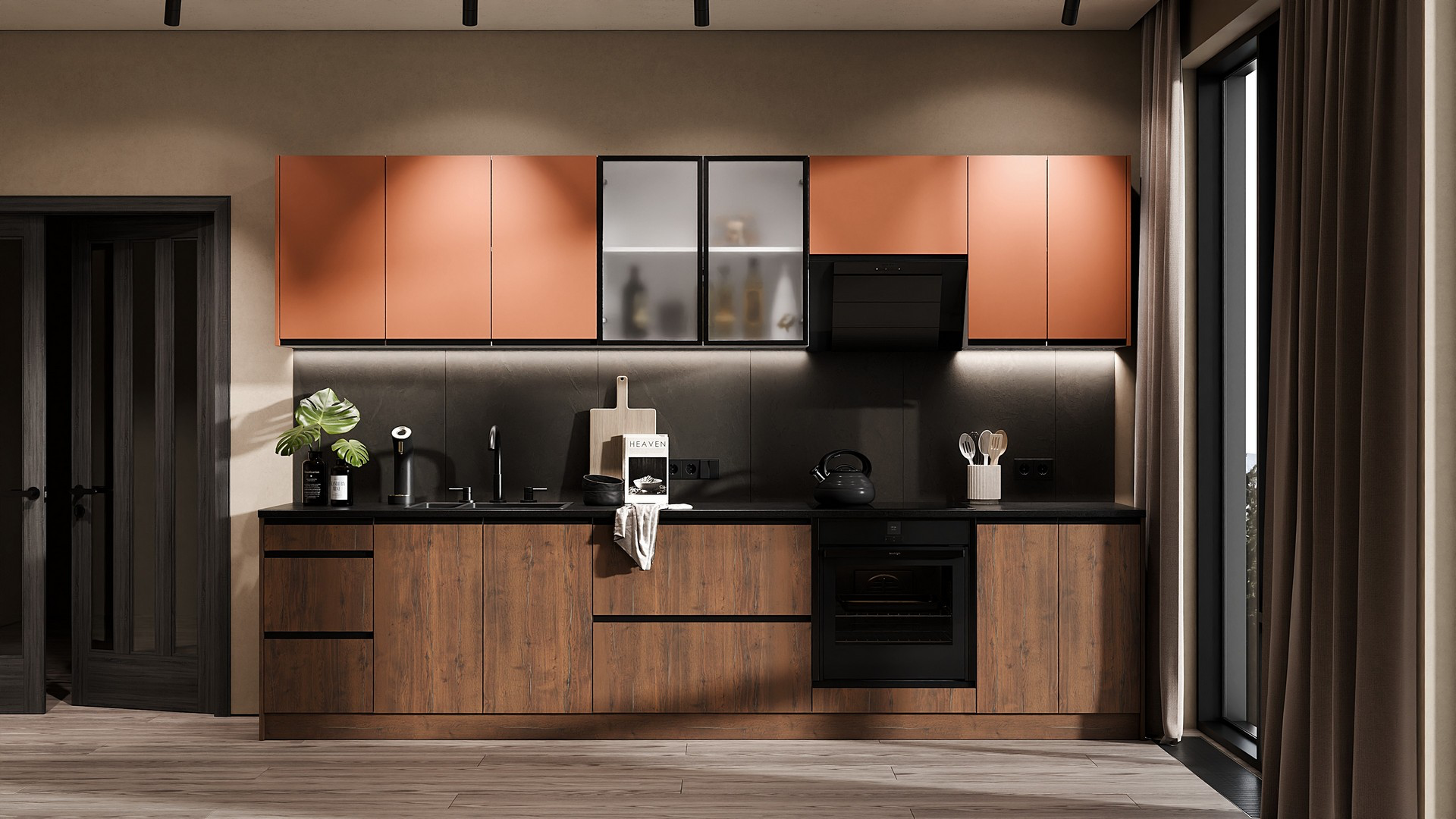 Ручка чорна поєднується лише з кольорами фасадів: Білий / Дуб королівський / Ательє світлий / Дуб сільверджек вінтажний / Зелений димчастий / Іриска / Сахара / Сіра мишка / Сатин / Сутінковий блакитний / Глиняний сірий.